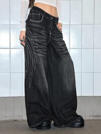 Grunge Punk Jeans da donna oversize vintage punk, decorati con borchie e strass