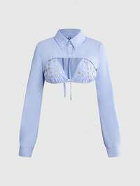 ROMWE Avant Top corto con ricamo di perline a motivo di squalo in stile Y2K sexy
