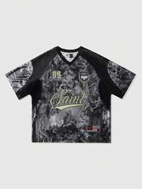 T-shirt casual da uomo a maniche corte, con stampa di lettere e croci, collo rotondo, vestibilità ampia