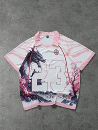 Maglietta a maniche corte da uomo, stile urban, con stampa drago e numero 23, essenziale per casual, all'aperto, sport
