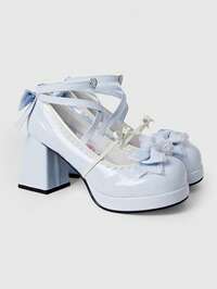 Kawaii Scarpe Mary Jane con tacco alto e punta chiusa, in stile Lolita/Gotico, con cinturino, platform, decorazione fiocco, pumps dal gusto giapponese dolce