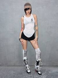 ROMWE Avant Canotta aderente da donna in stile Y2K con patchwork in rete e motivo a spartito musicale