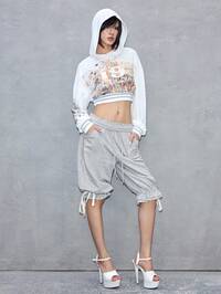 ROMWE Avant Pantaloni capri casual con cordino, orlo sfrangiato e più strati