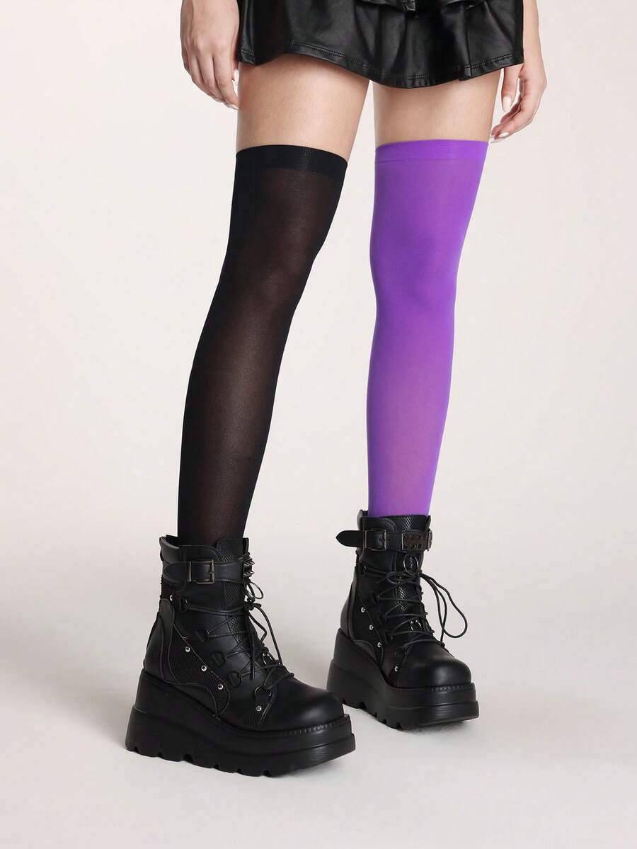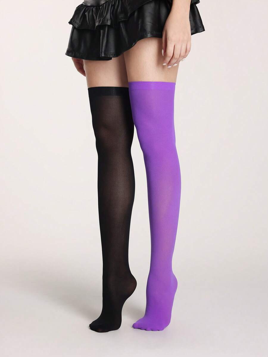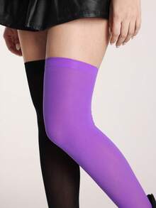 Anime 2 paia di calze minimaliste sopra il ginocchio, calze sexy a tinta unita nere e bianche in stile scolastico, calze velate ultra sottili ed elastiche