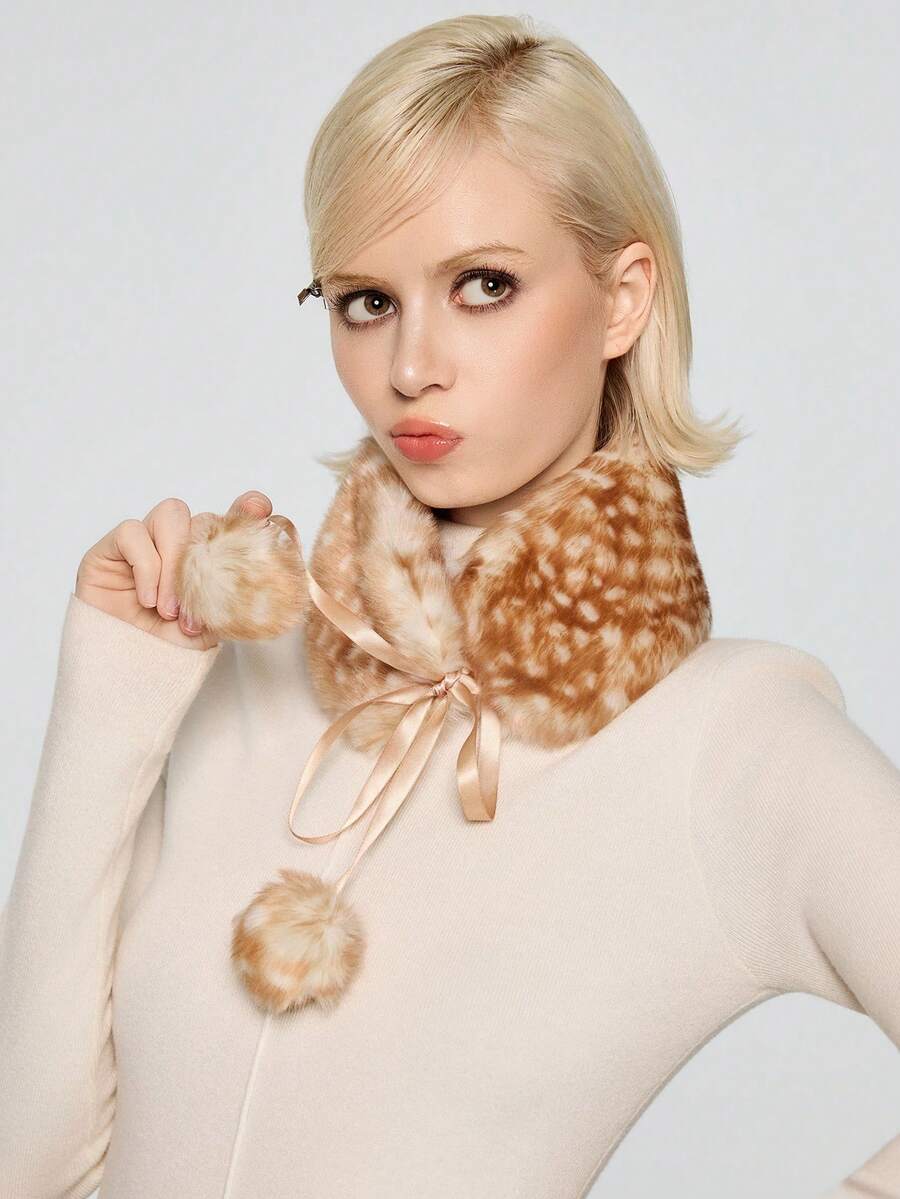 Fairycore 1 pezzo Sciarpa casual alla moda e calda per donna con motivo carino a cerbiatto, colore sfumato, adatta per scuola, shopping, viaggi, Natale e altro
