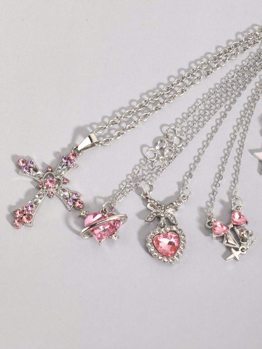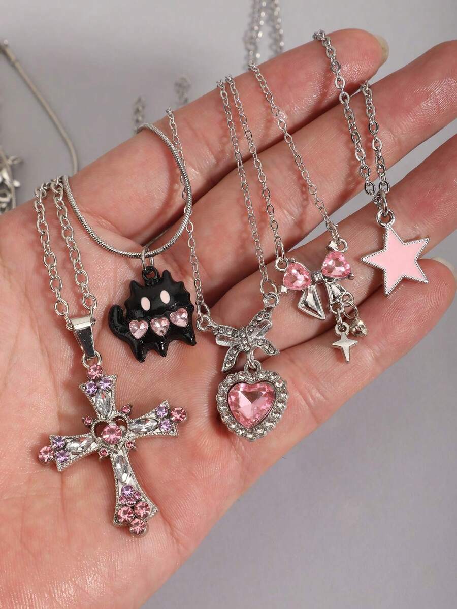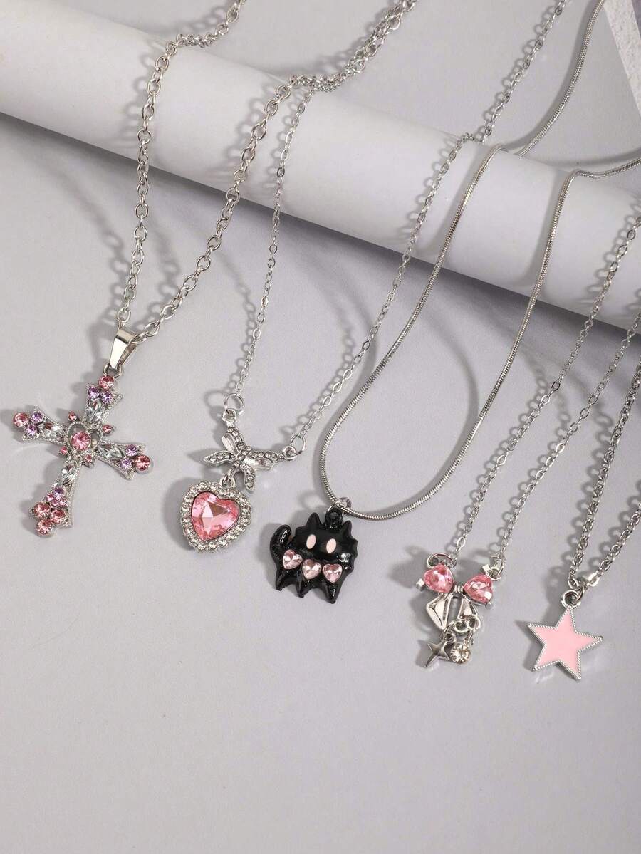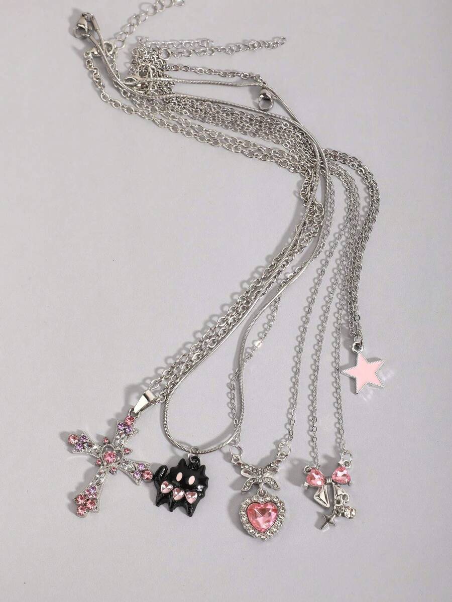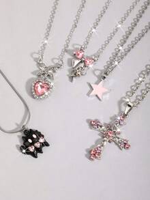 Goth 2 pezzi Collana con pendente a stella stile vintage punk con strass, collana a doppio strato con catena a stella placcata, choker da streetwear di lusso