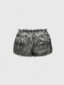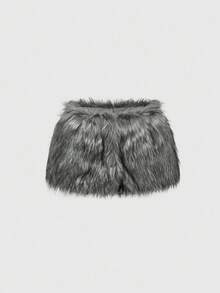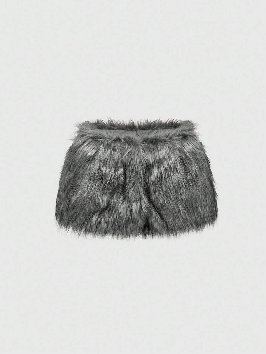 Grunge Punk Pantaloncini mini in finta pelliccia di taglia grande da donna, colore grigio, adatti per l'autunno/inverno in stile Y2K