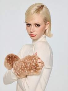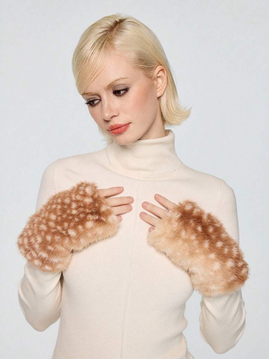 Fairycore 1 pezzo Guanti senza dita marroni, carini e dolci, con stampa animale a tessitura di cervo, di stile minimalista e caldi, adatti per scuola, shopping, appuntamenti, articolo alla moda e caldo per le donne