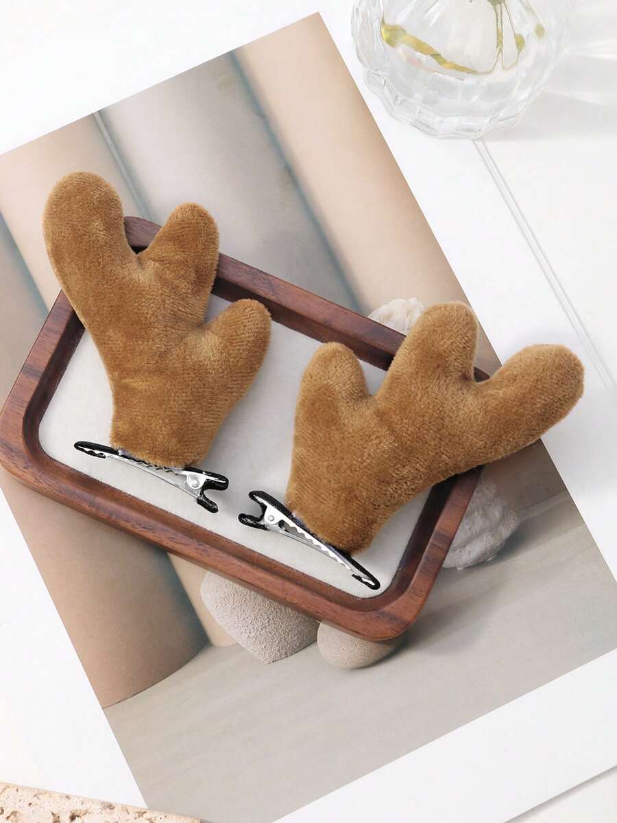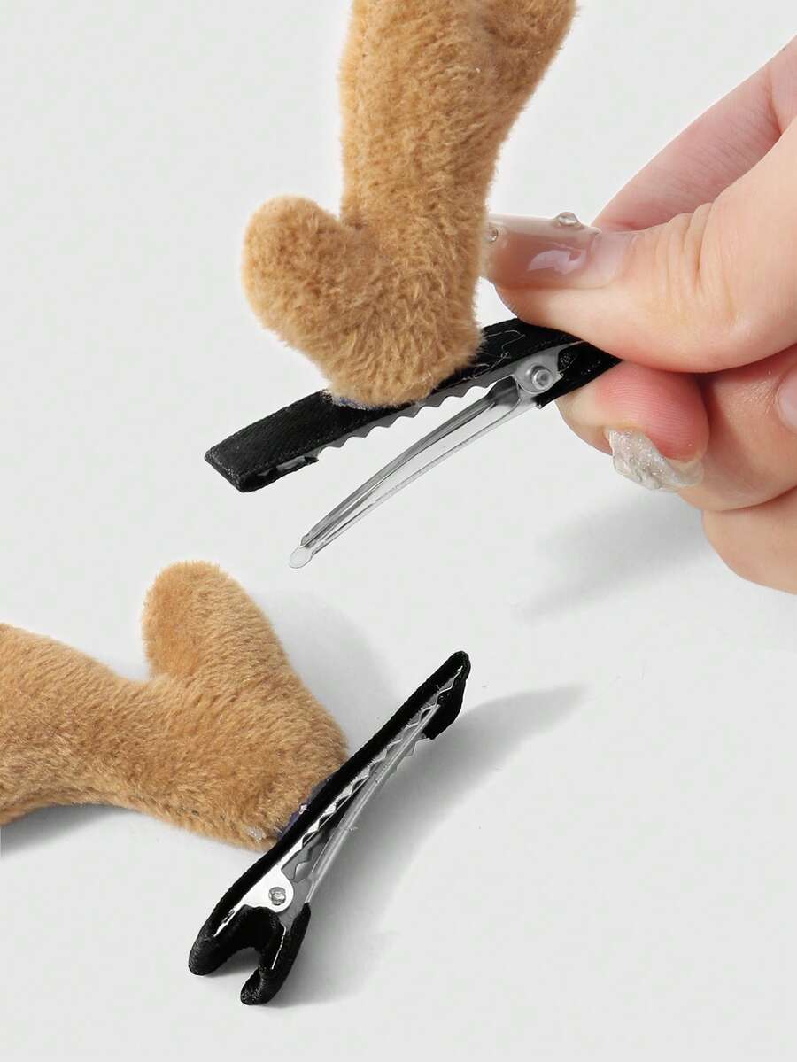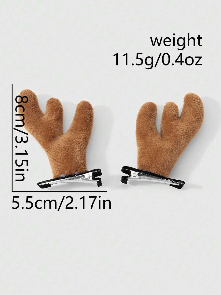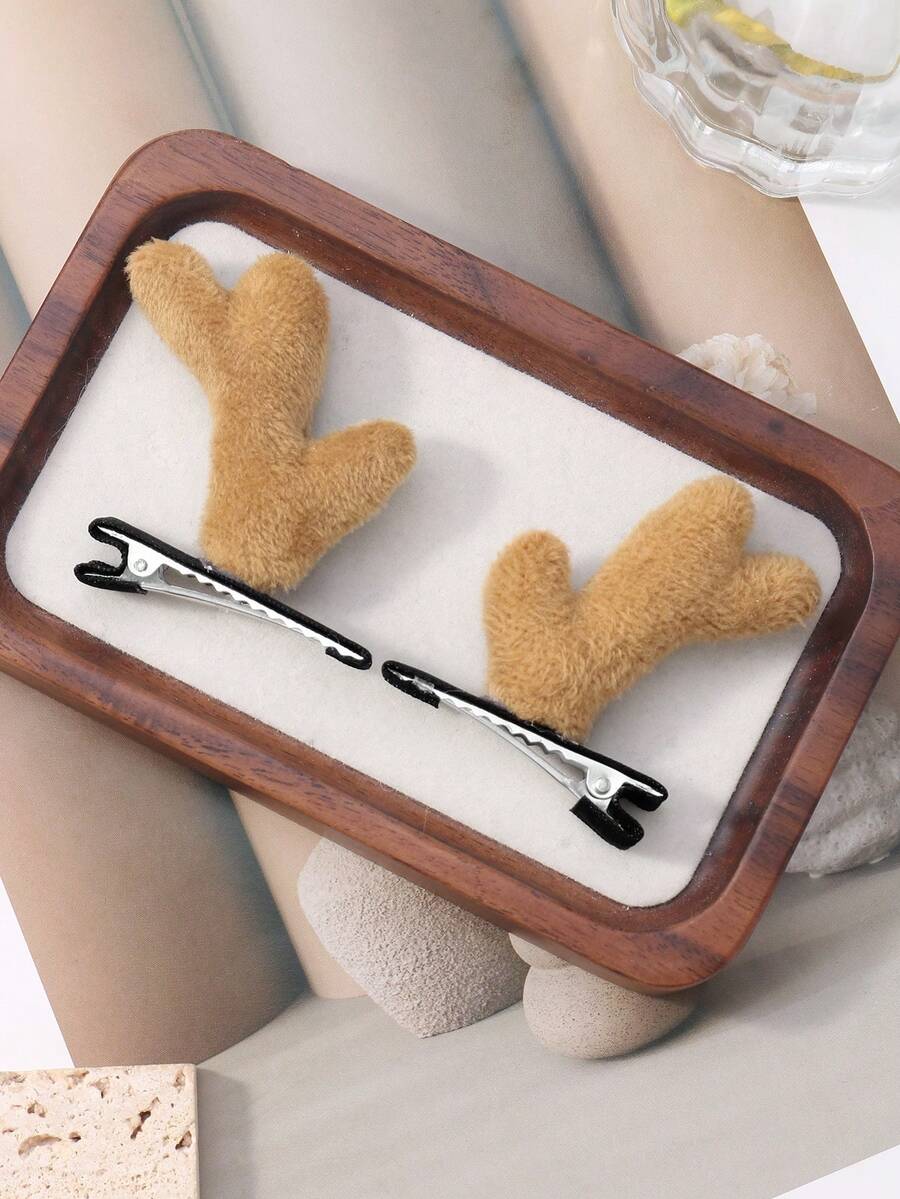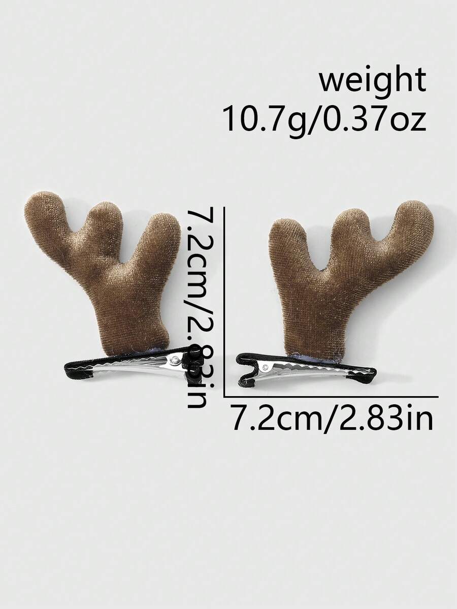 Kawaii 2 pezzi Assortimento di colori casuali e alla moda, stile boschivo di alta qualità, serie natalizia, fermagli per capelli in finta vellu 3D a forma di corna, orecchie e palchi di cervo, set adatto per donne e ragazze, per uso quotidiano e come regalo per le feste