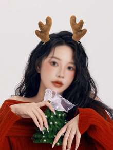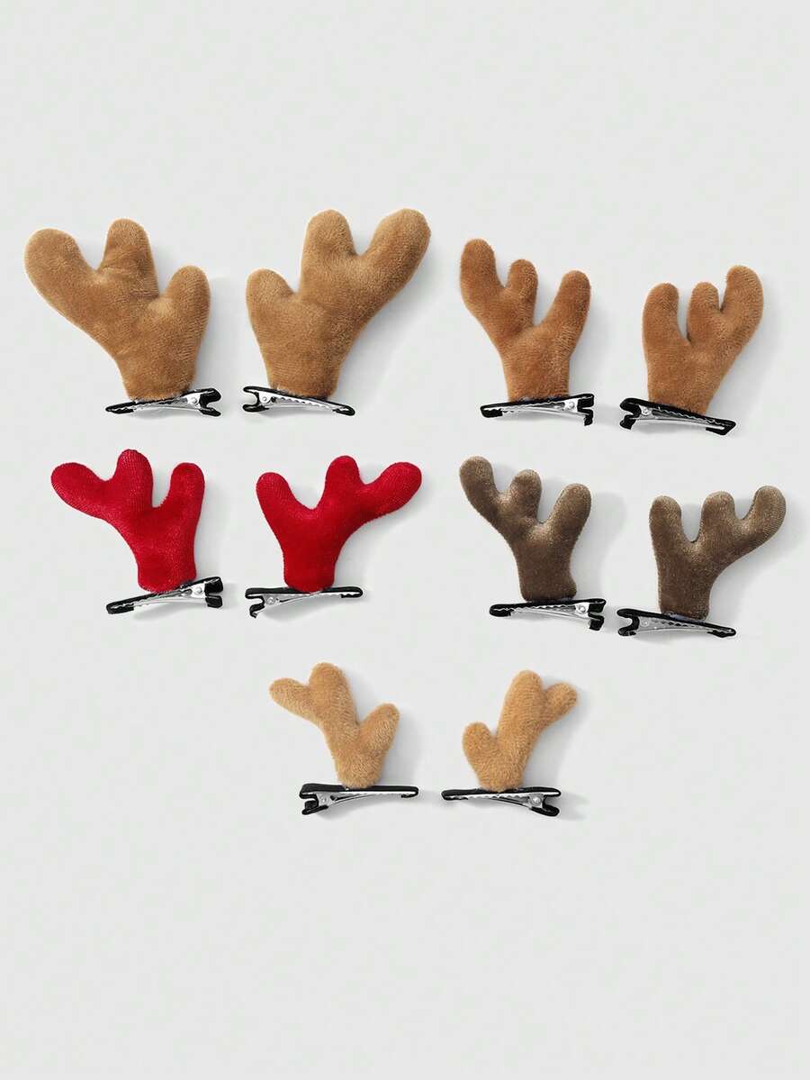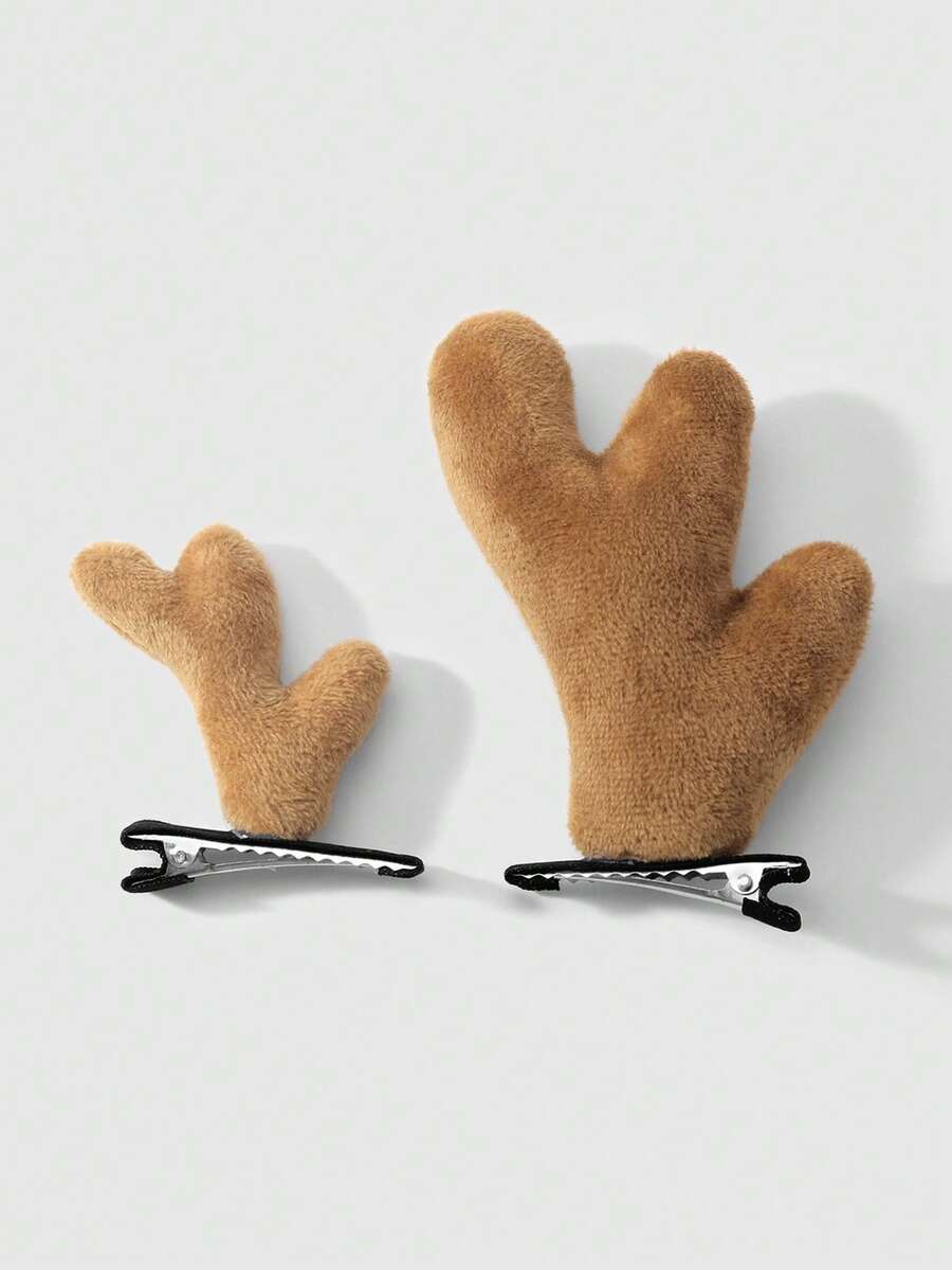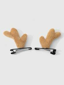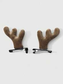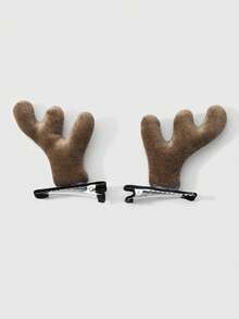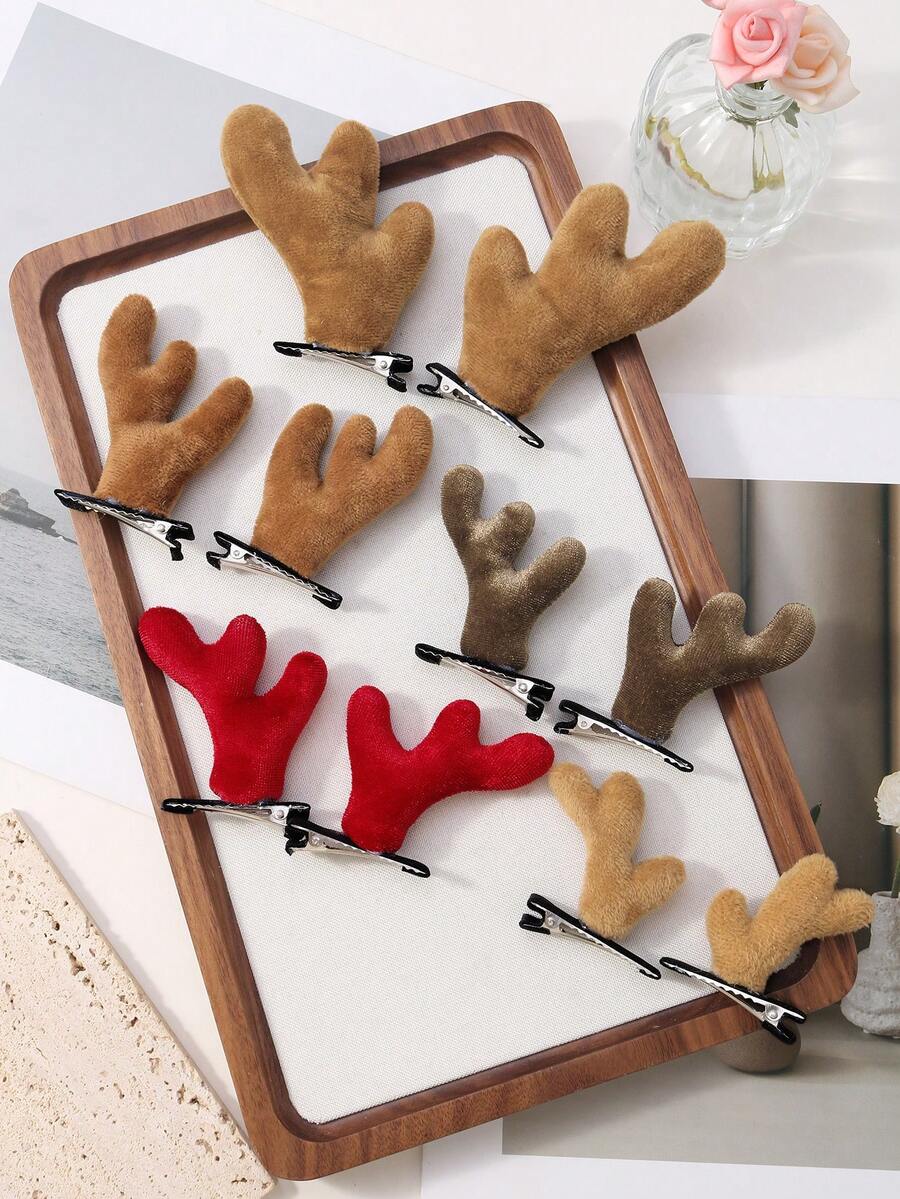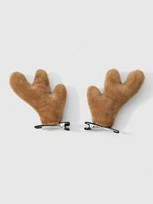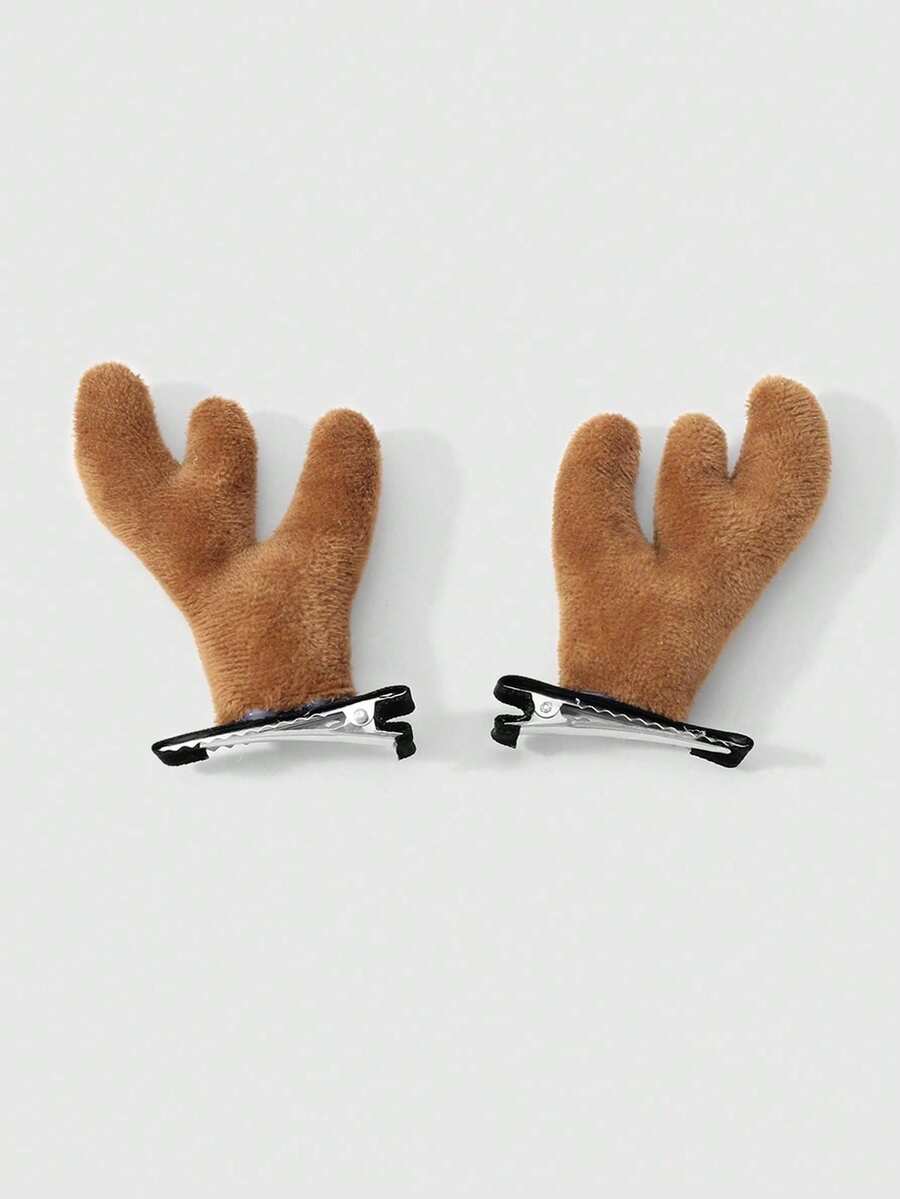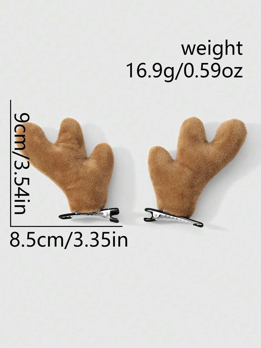 Kawaii 2 pezzi Assortimento di colori casuali e alla moda, stile boschivo di alta qualità, serie natalizia, fermagli per capelli in finta vellu 3D a forma di corna, orecchie e palchi di cervo, set adatto per donne e ragazze, per uso quotidiano e come regalo per le feste