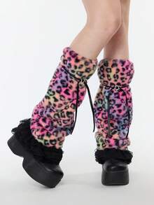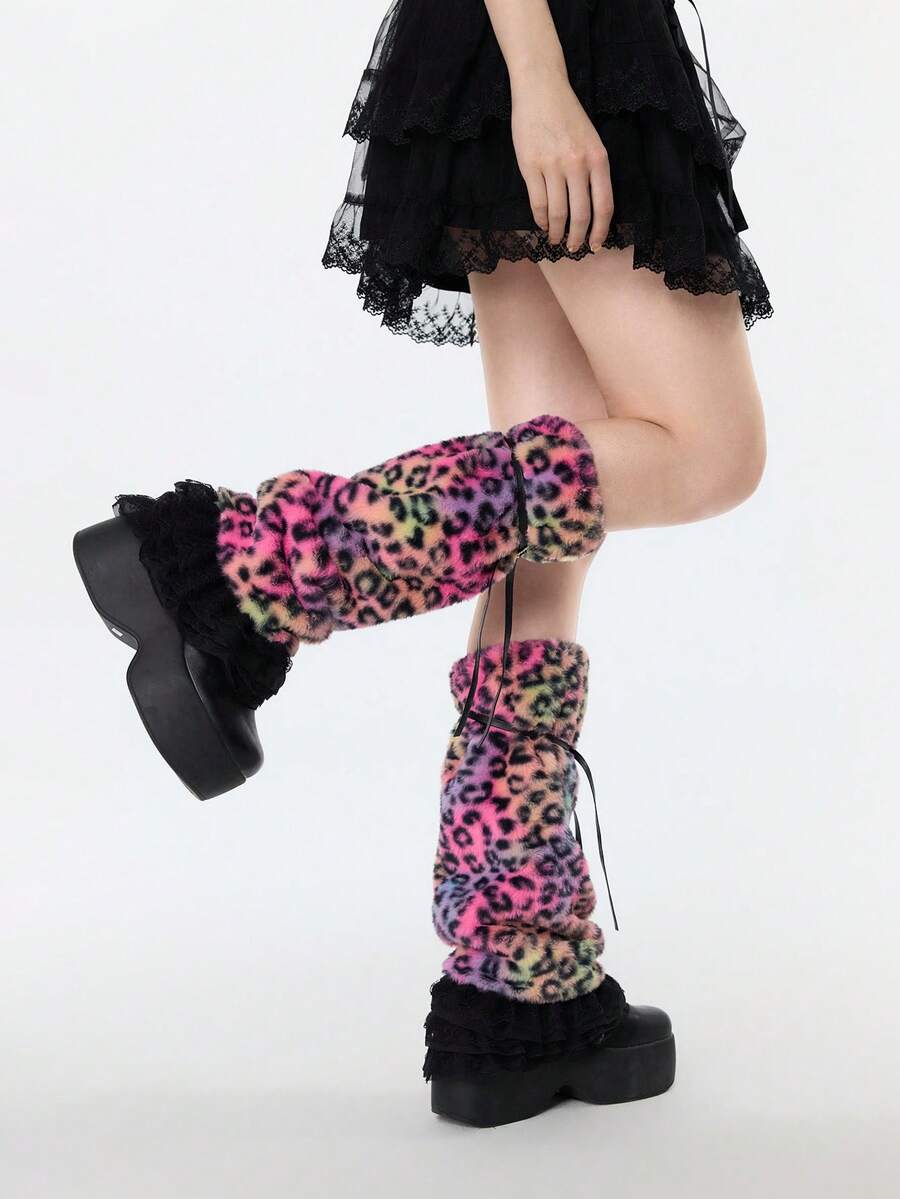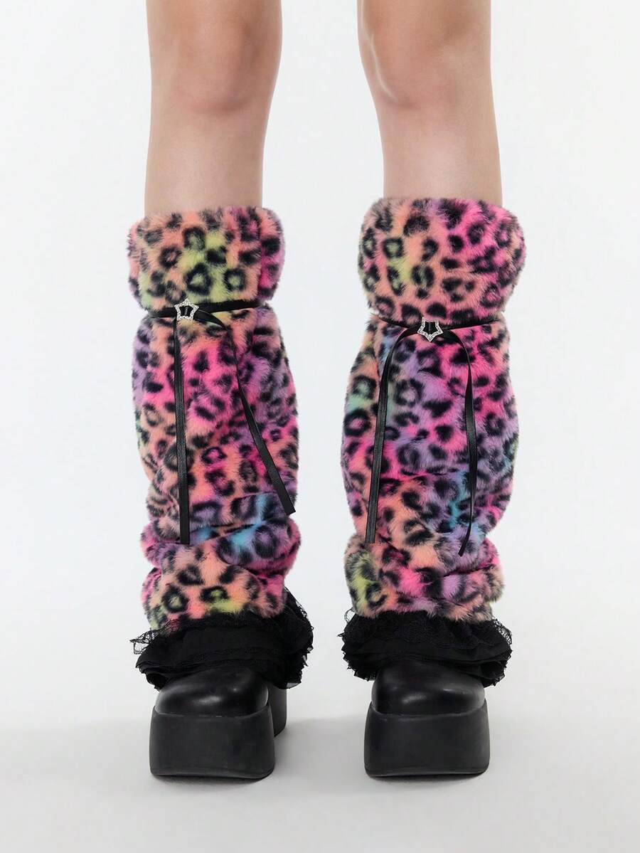 Goth 1 Coppia di scaldamuscoli alla moda in stile punk Y2K, con stampa leopardata, stelle, bordi in pizzo e design soffice, design minimalista e selvaggio adatto per uso quotidiano, feste, appuntamenti, shopping, ecc.