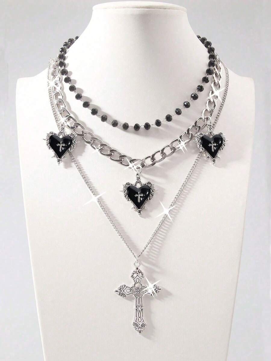 Goth 2 pezzi Collana con pendente a stella stile vintage punk con strass, collana a catena a doppio strato con stelle luccicanti di lusso, choker da streetwear