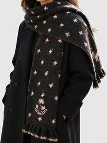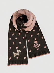 Anime 1 pezzo Sciarpa calda con stampa retrò carina a tema cervo bicolore rosa e cachi, stile minimalista alla moda per donna, adatta per uso quotidiano, scuola, appuntamenti, shopping, viaggi, autunno/inverno