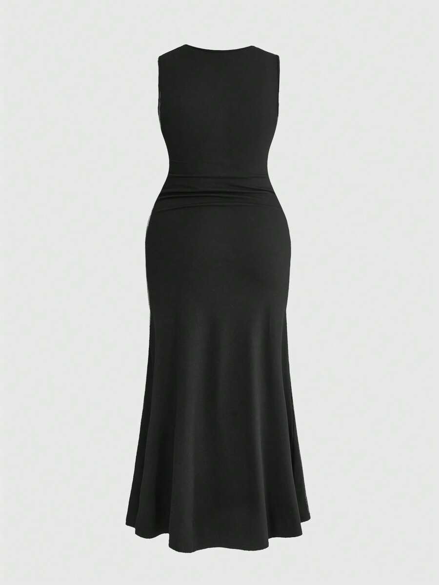 Abito casual ed elegante da donna taglie forti, con scollo quadrato, fiocco in pizzo, nero, adatto per primavera/estate, comodo per uso quotidiano