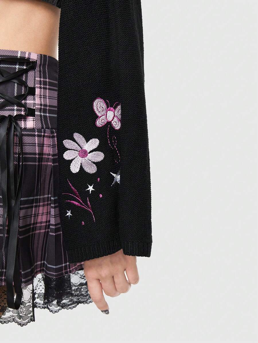 texdoodles Maglione corto con ricamo con modello di cartone animato con manico svasato