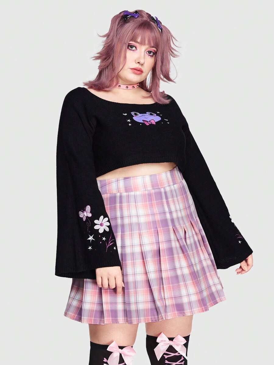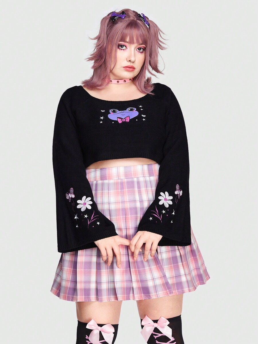 texdoodles Taglie Forti Maglione corto lettere & modello floreale spalle cadenti