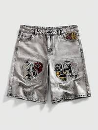 Pantaloncini di jeans larghi da uomo con ricamo a drago