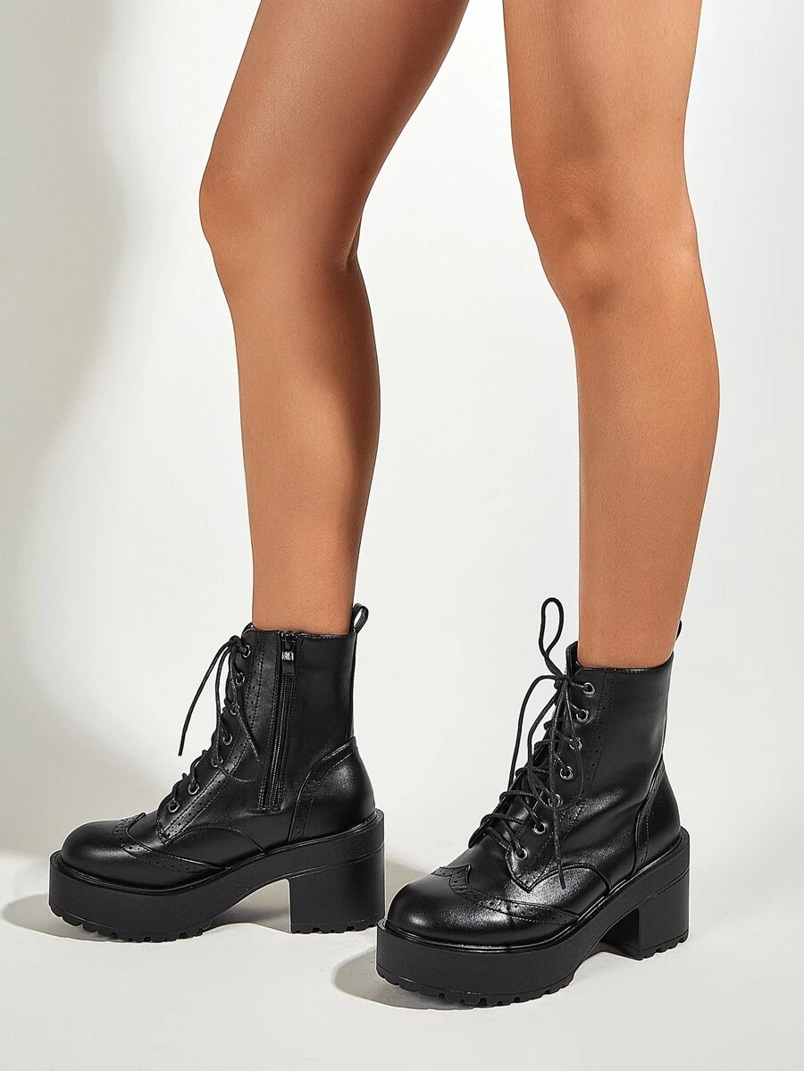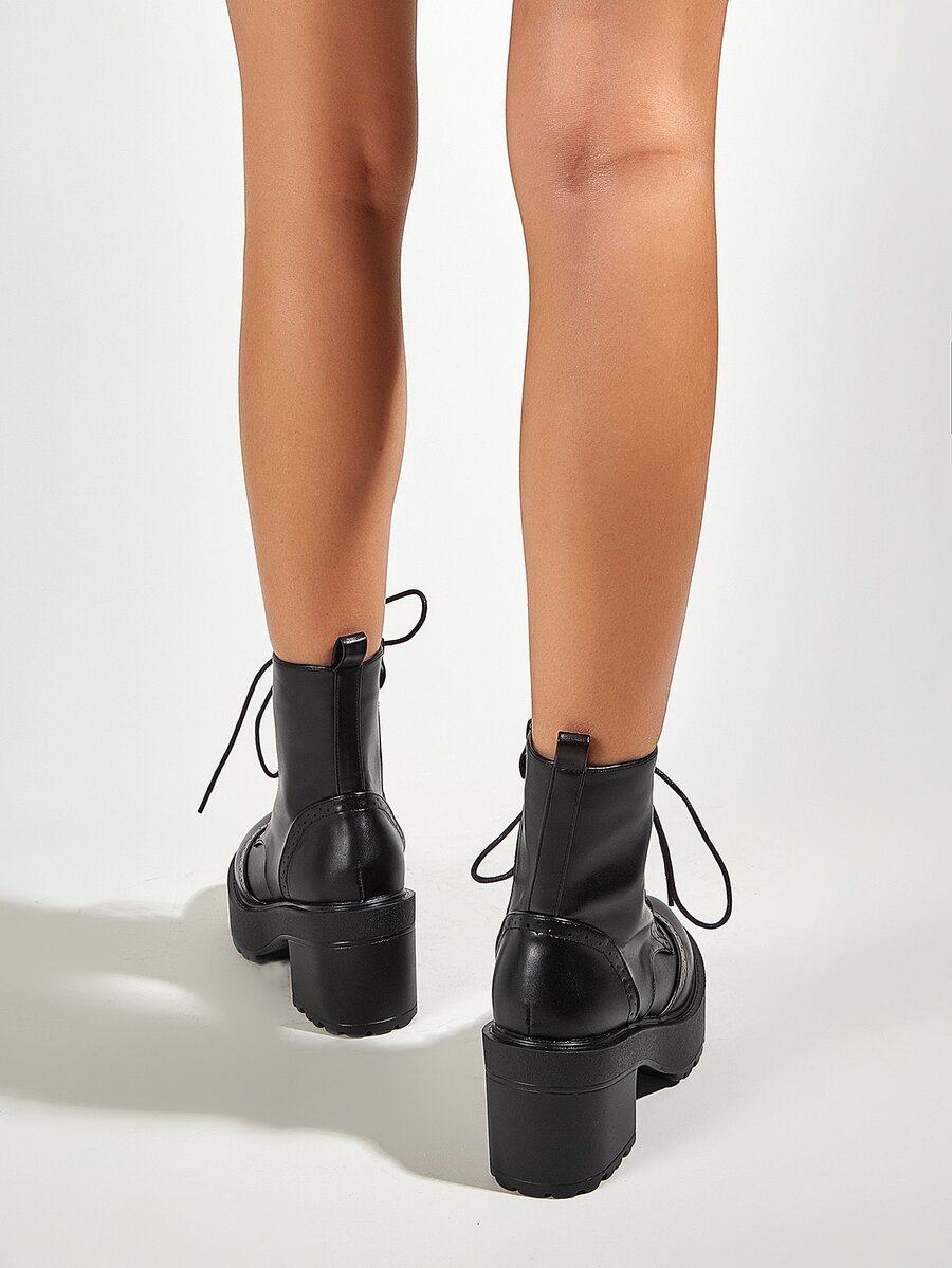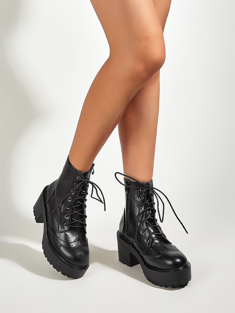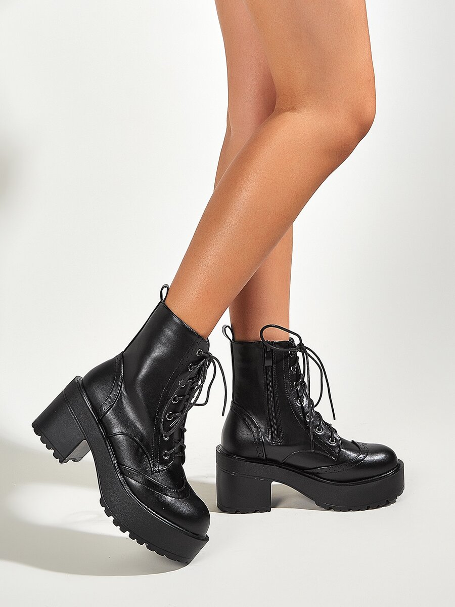 Stivali con tacco grosso con lacci sul davanti
